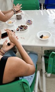 A ação, desenvolvida pela nutricionista Thaíne Azevedo, em parceria com a Cindi Darlla Doces Artesanais (@cindidarlladoces), promoveu uma oficina de brigadeiro marcada por conexão, aprendizado e alegria. Mais do que uma receita, a atividade proporcionou uma experiência leve e significativa durante o tratamento.